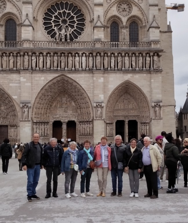 Après un bon repas au cœur de la capitale, le groupe a débuté les visites par la cathédrale Notre-Dame. Accompagnés de guides passionnés, les participants ont pu admirer ce chef-d’œuvre gothique commencé en 1163, découvrir son histoire et observer l’ampleur des travaux de restauration entrepris après l’incendie de 2019.